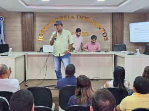 A primeira reunião dos Membros do Comitê das Bacias Hidrográficas do Litoral Norte sob a presidência de Alfredo Nogueira Neto aconteceu nesta quinta-feira (16), na Câmara Municipal de Itapororoca. O momento marcou a 3ª Reunião Ordinária do Comitê e inclui uma pauta de debates bem extensa que começou com a aprovação da Ata do encontro anterior e terminou com a apresentação do Relatório de Segurança de Barragens do CBH-LN, feito pelo Gerente de Operações de Mananciais e de Segurança de Barragens da AESA, João Pedro Chaves.
