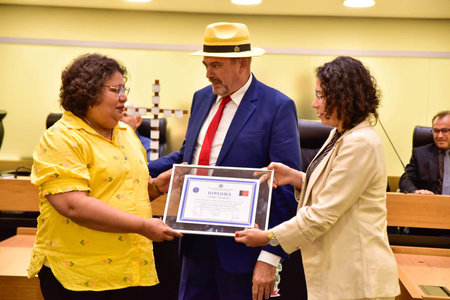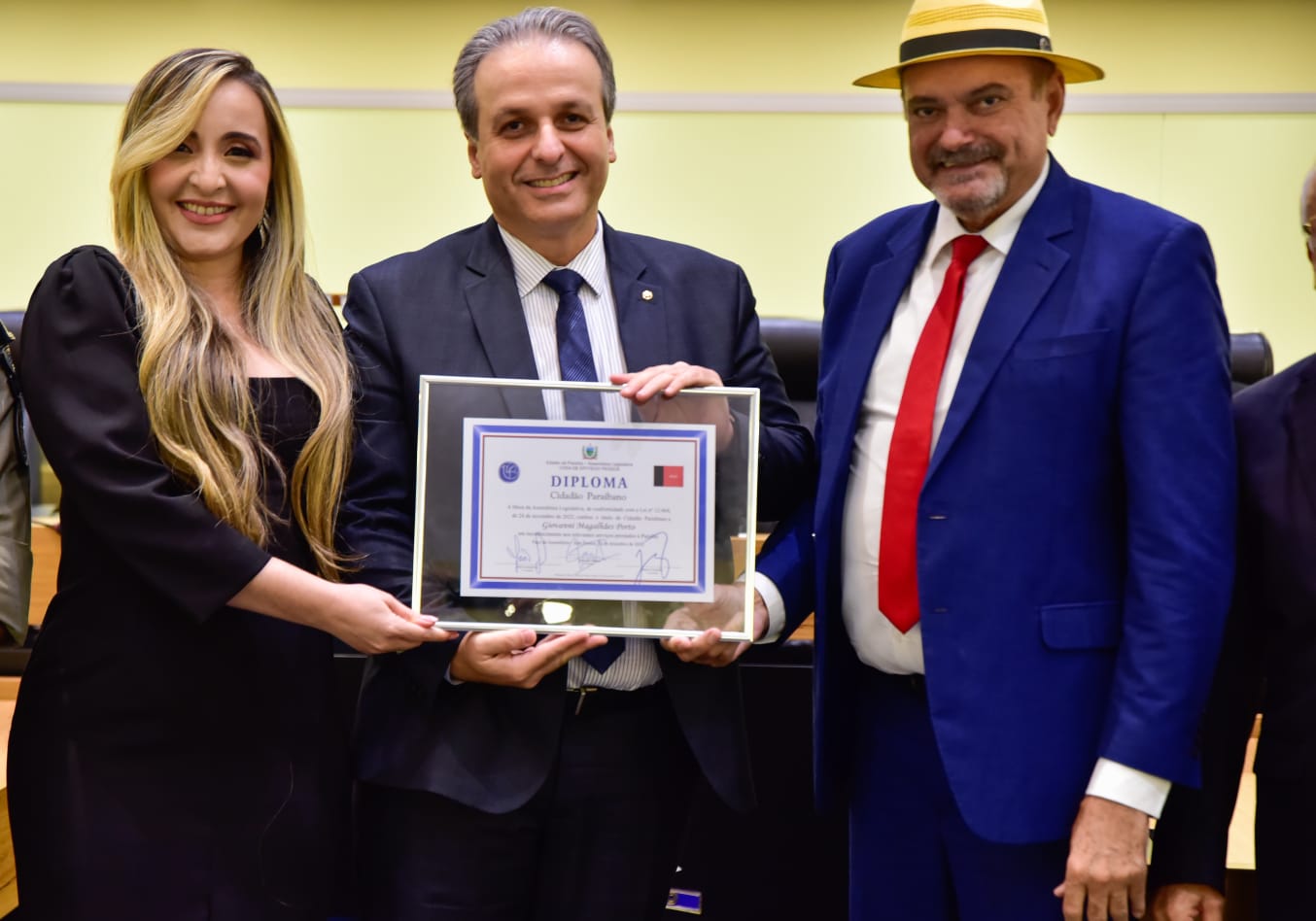 A Assembleia Legislativa da Paraíba (ALPB) entregou, na tarde desta segunda-feira (12), durante sessão solene no plenário da Casa, dois títulos de Cidadão Paraibano. Um dos títulos foi para o pernambucano, Doutor Giovanni Magalhães Porto, juiz de Direito integrante do Tribunal de Justiça da Paraíba. O outro foi concedido ao Doutor Delegado André Luis Rabelo de Vasconcelos, atual Delegado Geral de Polícia Civil da Paraíba, e paulista de nascimento. Os homenageados, em suas respectivas áreas de atuação, prestaram relevantes serviços ao Estado da Paraíba. Ambas as proposituras foram do deputado estadual Jeová Campos. Em função do falecimento de uma tia, o delegado André Luís se fez representar pela Superintendente da 1ª Superintendência Regional da Polícia Civil, Maísa Félix de Araújo Ribeiro e pela Delegada Adjunta da Polícia Civil da Paraíba, Cassandra Maria Duarte Guimarães. Mas, mesmo assim, agradeceu de forma remota a homenagem prestada pela ALPB.