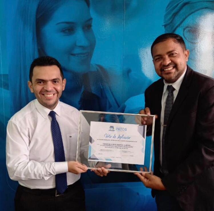 Francisco Guedes e o vereador Ramon na entrega da homenagem