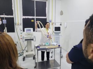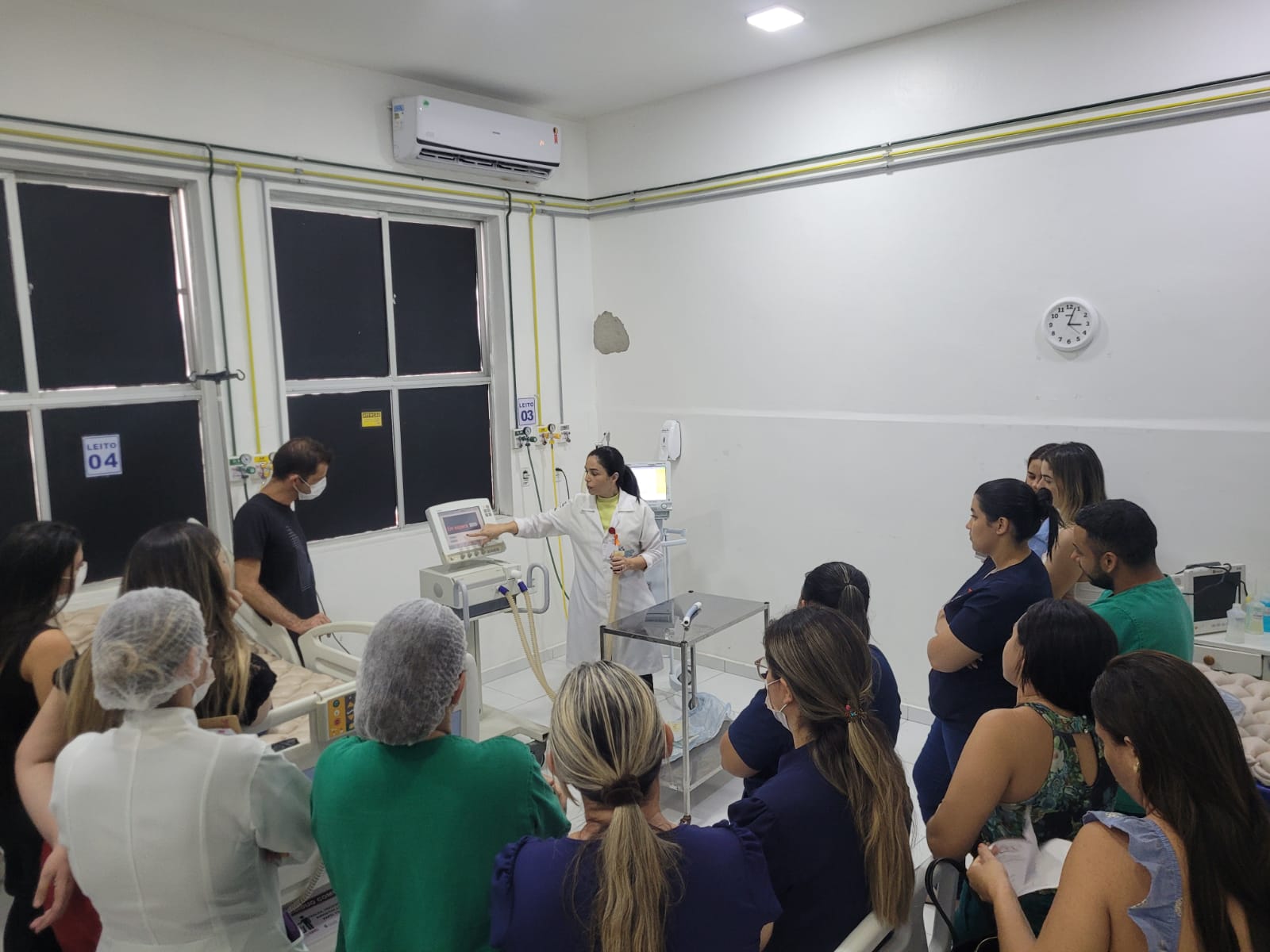 O curso de “Ventilação Mecânica: da montagem aos parâmetros de admissão”, foi direcionado para enfermeiros, técnicos de enfermagem e fisioterapeutas e ministrado pela coordenadora da fisioterapia, Rayne Torres. Profissionais do Hospital Infantil Noaldo Leite também participaram da capacitação como convidados.