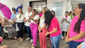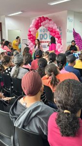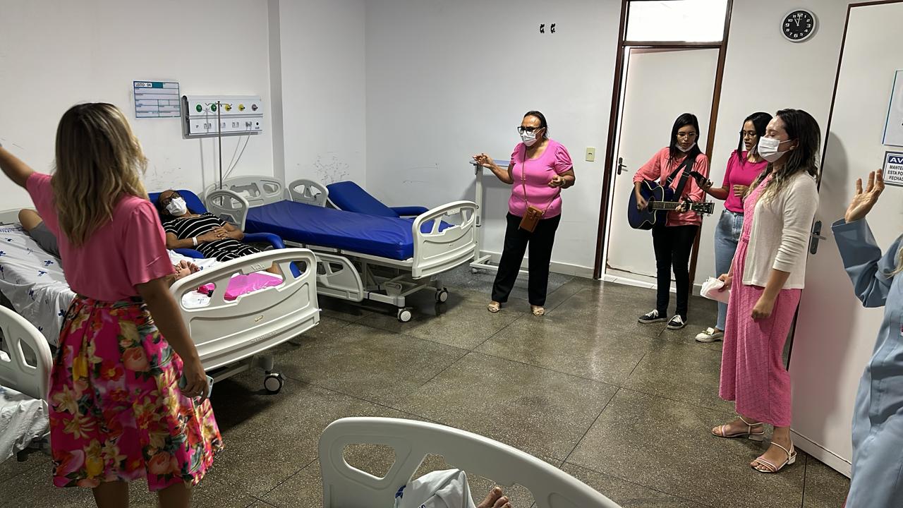 A rotina no Hospital do Bem, que integra o Complexo Hospitalar Regional Deputado Janduhy Carneiro, unidade da rede estadual de saúde, em Patos, com atendimento oncológico, foi alterada nesta terça-feira (12), por causa de um evento comemorativo em homenagem ao Dia da Mulher. O momento, que aconteceu na recepção do hospital, teve distribuição de brindes, momentos de beleza com sessão de maquiagem e penteados, depoimentos de pacientes e ex-pacientes, música, dança e um lanche especialmente preparado pela equipe de Nutrição, além de distribuição de chocolates, mensagens alusivas à comemoração e decoração temática com bolas rosas claras e escuras.