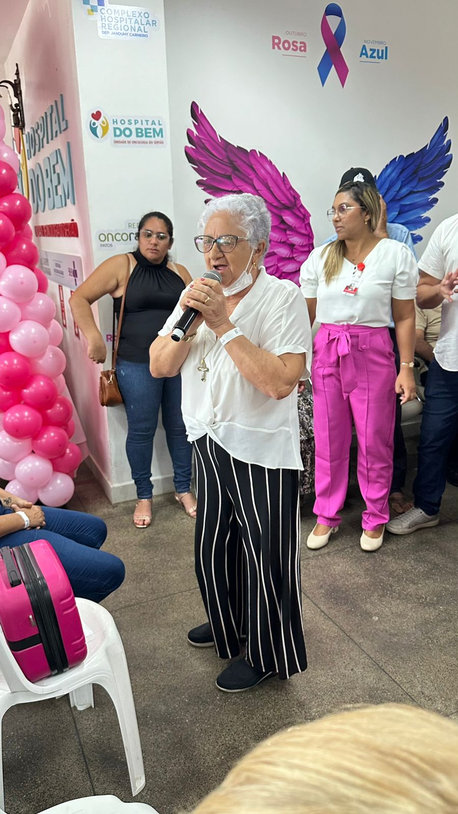 A professora aposentada Maria do Socorro de Sousa de Andrade, da cidade de Sousa, também faz tratamento de um câncer de mama no Hospital do Bem. Ela já encerrou o ciclo de quimioterapia e no dia 19 de abril fará uma cirurgia na unidade. Ela elogiou a assistência recebida e a iniciativa pela comemoração. “Eu gosto demais daqui e essa comemoração hoje está muito bonita e me emocionou bastante. Meu marido Francisco Fananca, inclusive, já foi paciente daqui. Ele tirou um câncer na orelha e está curado. Graças a Deus existe esse hospital aqui e em breve teremos um também em Sousa que está sendo construído”, disse ela.
