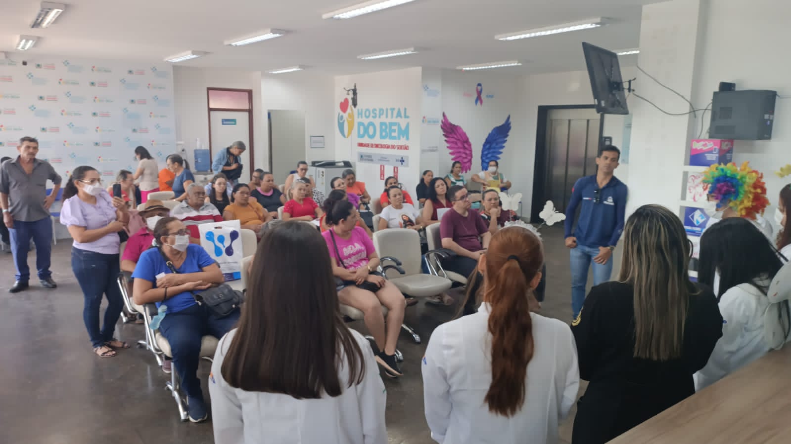 A ação foi dividida em dois momentos: um de abordagem e debate que foi realizado na recepção do Hospital do Bem para pacientes que estavam na espera do atendimento, acompanhantes e funcionários da unidade; e outro, por meio de visita às enfermarias.