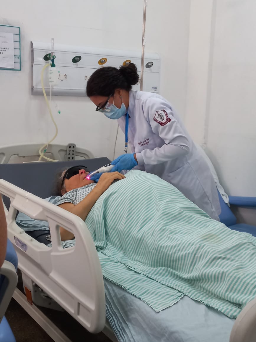 Melhorar a qualidade de vida dos pacientes oncológicos em tratamento, prevenindo e tratando complicações orais que possam dificultar a alimentação e, consequentemente, prejudicar o tratamento quimioterápico. Esta é a proposta do projeto “Luz é Vida Saúde e Bem-Estar” que o Hospital do Bem, unidade da rede estadual de saúde, em parceria com a Clínica Escola de Odontologia da UFCG, começou a desenvolver com os pacientes de Patos. A prevenção e tratamento laserterápico está sendo ofertada em casos de trismo, xerostomia, mucositose oral, ulcerações e aftas e em casos de infecções fúngicas e bacterianas orais.