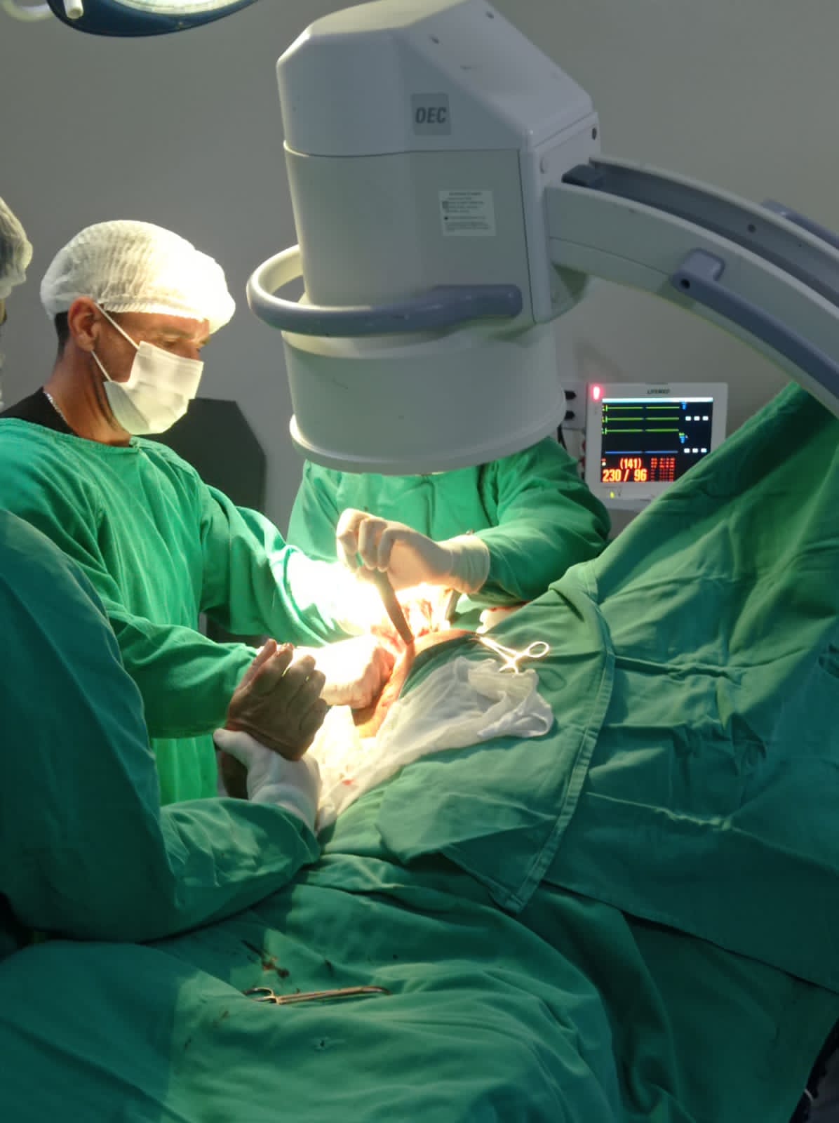 Das oito cirurgias realizadas, cinco foram de urgência e três eletivas. Foram três procedimentos Oncológicos, dois Vascular, um Geral, outro Ortopédico e um Buco-Maxilo.