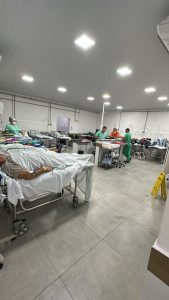 Das 41 cirurgias realizadas, 14 foram de urgência e 27 eletivas. Foram 26 procedimentos oncológicos, oito ortopédicos, quatro vasculares e três cirurgias gerais. Entre a sexta-feira (18) e o domingo (20), o hospital atendeu na urgência e emergência 302 pessoas, sendo 117 no dia 18, mais 105 no sábado e outras 80 no domingo. Neste período, 71 pessoas precisaram ficar hospitalizadas para cuidados posteriores à assistência emergencial.