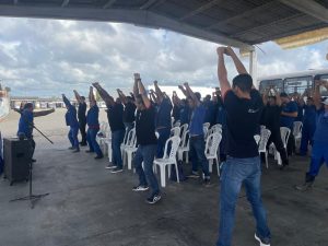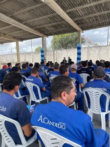 Após a sessão e antes de iniciarem a jornada de trabalho, os colaboradores participaram de um lanche coletivo, encerrando a ação de forma integrada e reforçando o clima de conscientização e cuidado mútuo dentro da empresa. A iniciativa faz parte do compromisso do Grupo A.Cândido em promover o bem-estar dos seus profissionais e estimular práticas de saúde no ambiente de trabalho. Também houve distribuição de um panfleto educativo institucional com dicas de como se cuidar, sobre fatores de risco do câncer de próstata, a importância do diagnóstico precoce e sintomas da doença.