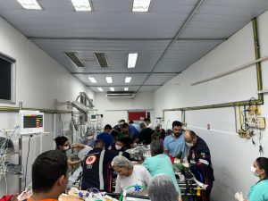 A urgência também foi dividida em subpartes, explica Allan, destinando os pacientes mais graves para o eixo vermelho, outro setor para pequenos procedimentos e outro que abordou os casos mais leves. “Todo um contingente de profissionais foi montado, dividido e dimensionado para que o atendimento fosse o mais eficaz possível. Tínhamos seis médicos prontamente atendendo os casos, a equipe de enfermagem foi ampliada, inclusive com profissionais que não estariam de plantão, mas se dispuseram a vir e reforçar a equipe para atender essa demanda, outros passaram do tempo de seus plantões de forma que essa força tarefa foi crucial para o bom e célere atendimento às vítimas destes acidentes”, destaca o enfermeiro.
