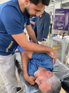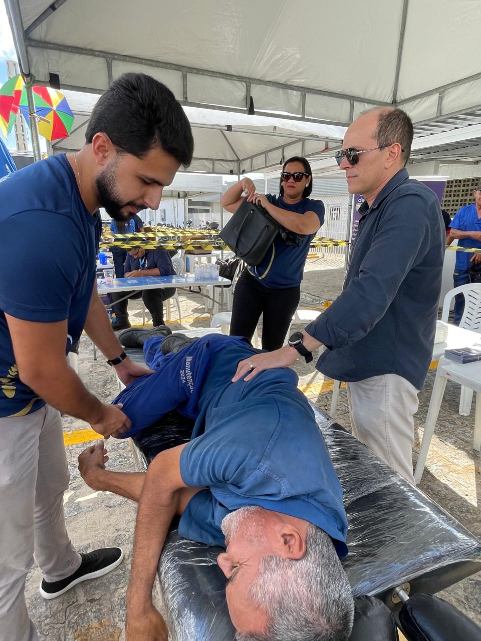 O Auxiliar de Mecânico Valmir Inácio também participou da ação e aprovou a iniciativa. “Eu gostei demais, pois é uma oportunidade para os funcionários. Esse é o tipo de ação que a gente vê que a empresa se preocupa com o funcionário além das questões normais do dia a dia”, destacou ele. Outro colaborador que elogiou a ação foi o mecânico Genildo da Silva, que passou por uma avaliação e atendimento na tenda de quiropraxia com o fisioterapeuta Celso Brandão. Durante o atendimento, ele também recebeu orientações sobre como cuidar da postura para evitar lesões.