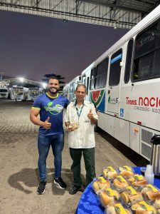 E neste dia 25, em João Pessoa, os profissionais que começaram o expediente no turno da manhã foram homenageados com umcafé da manhã, que começou a ser servido na garagem no bairro de Água Fria ainda de madrugada e se estendeu até por volta das 8h. Quem pegou no turno da tarde, recebeu um lanche especial. A ambientação com bolas azuis, vermelhas e brancas, cores que formam a marca do Grupo, complementaram o espaço para receber os homenageados.