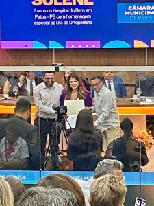 A Câmara Municipal de Patos realizou, nesta terça-feira (1), uma Sessão Solene em homenagem aos sete anos de funcionamento do Hospital do Bem, unidade oncológica que integra o Complexo Hospitalar Regional Deputado Janduhy Carneiro (CHRDJC). O evento reuniu funcionários, autoridades, gestores e usuários do serviço, e destacou a relevância da unidade para a interiorização da assistência em oncologia no Sertão da Paraíba. Criado em 2018, o hospital mantém atendimento ininterrupto desde a abertura, inclusive durante a pandemia de Covid-19, e hoje é considerado referência regional na assistência a pacientes com câncer.