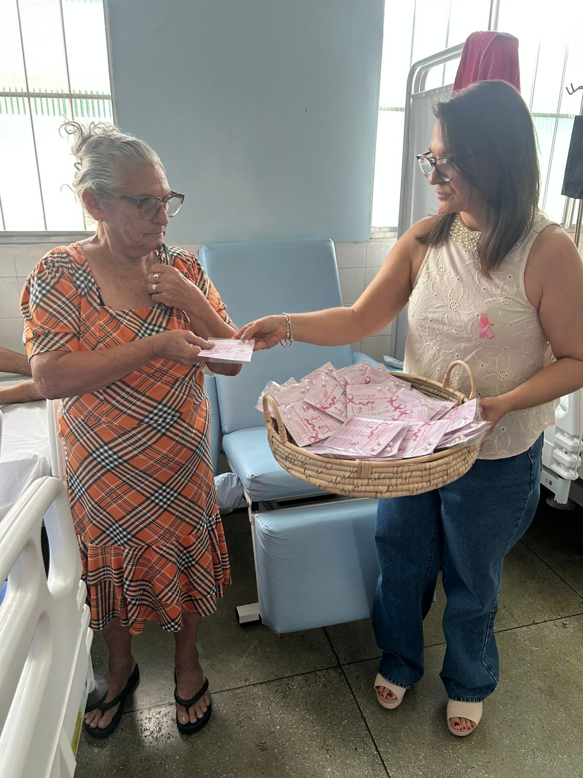 No dia 15, a programação contou ainda com a participação da fisioterapeuta Jeane Carla e da assistente social Maria José Eufrásio, que conduziram uma palestra sobre o autoexame e os exames preventivos, voltada para quem aguardava consultas e seus acompanhantes. Houve também momentos de reflexão, dinâmicas, panfletagem educativa e entrega de brindes. Essa mesma abordagem vem sendo realizada nas enfermarias e seguirá até o fim de outubro, marcando o encerramento da campanha.