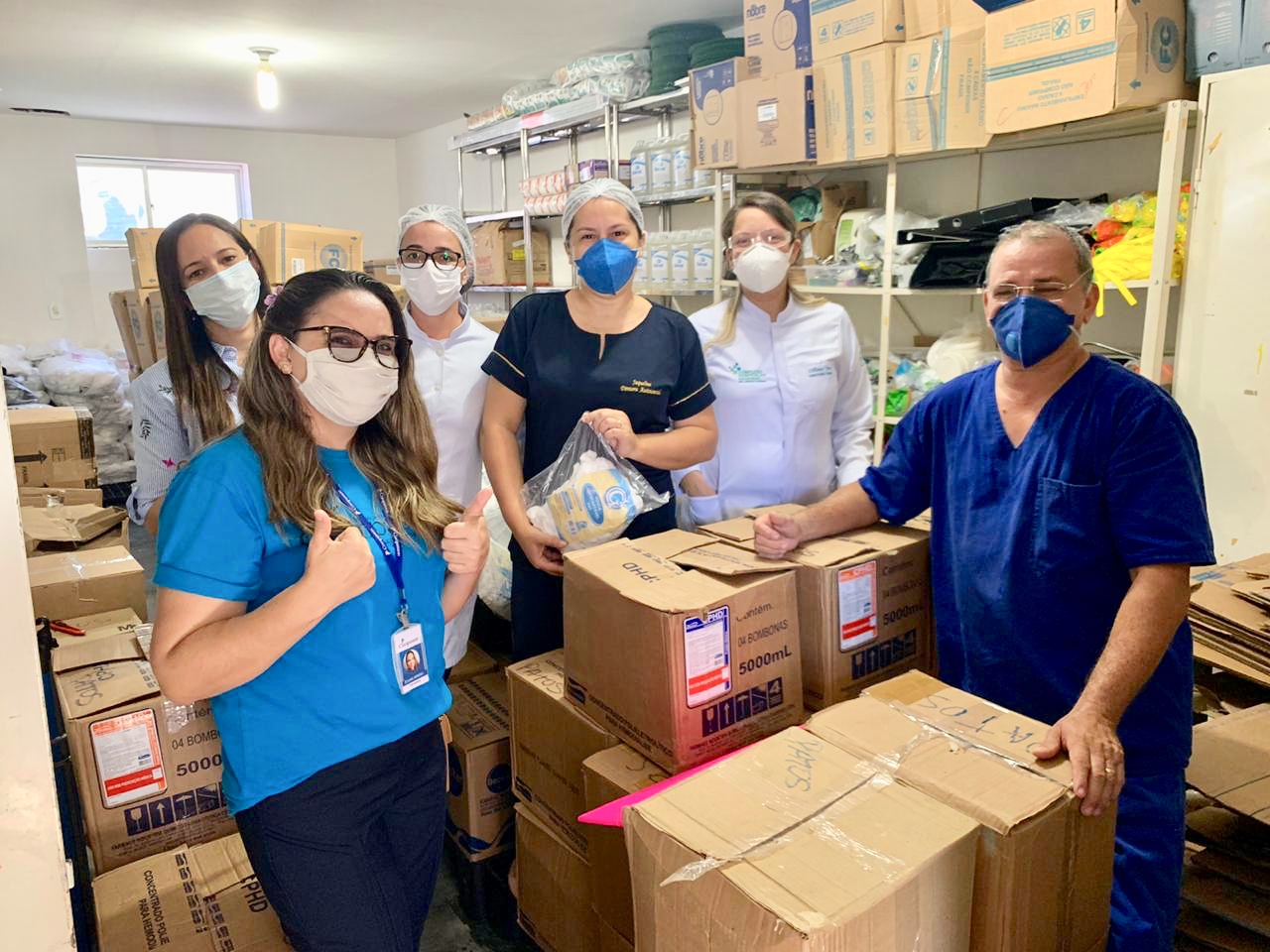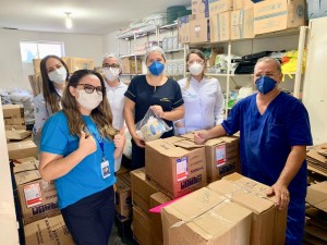 A equipe do Hospital que recebeu o material doado