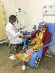 Uma das pacientes do Hospital do Bem durante quimioterapia