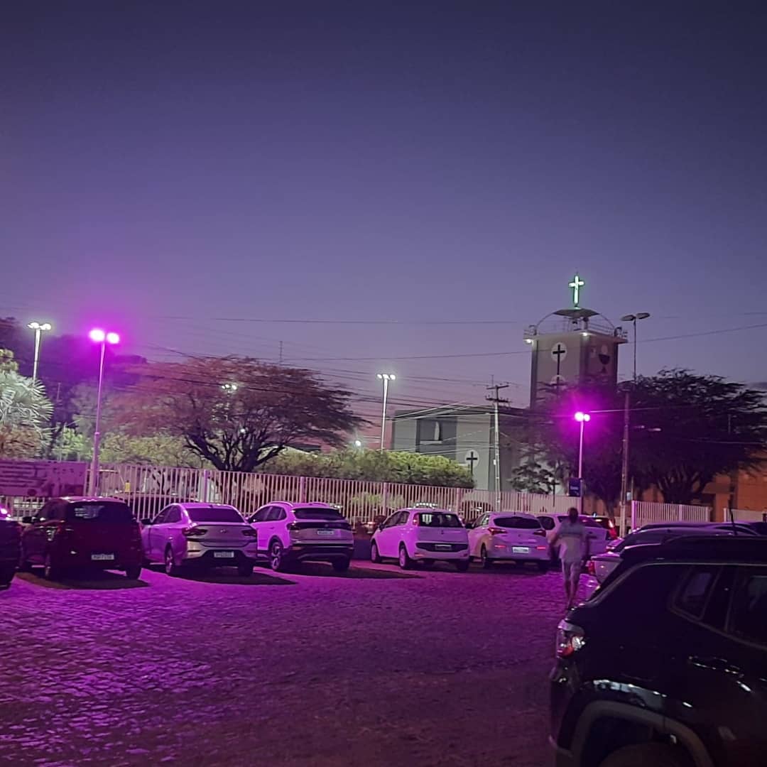 EStacionamento do hospital de Patos em clima de Outubro Rosa