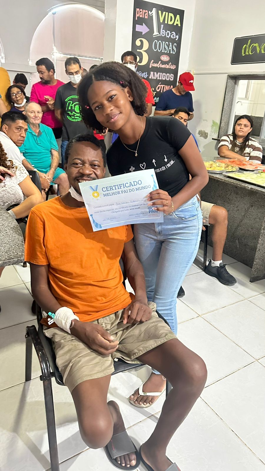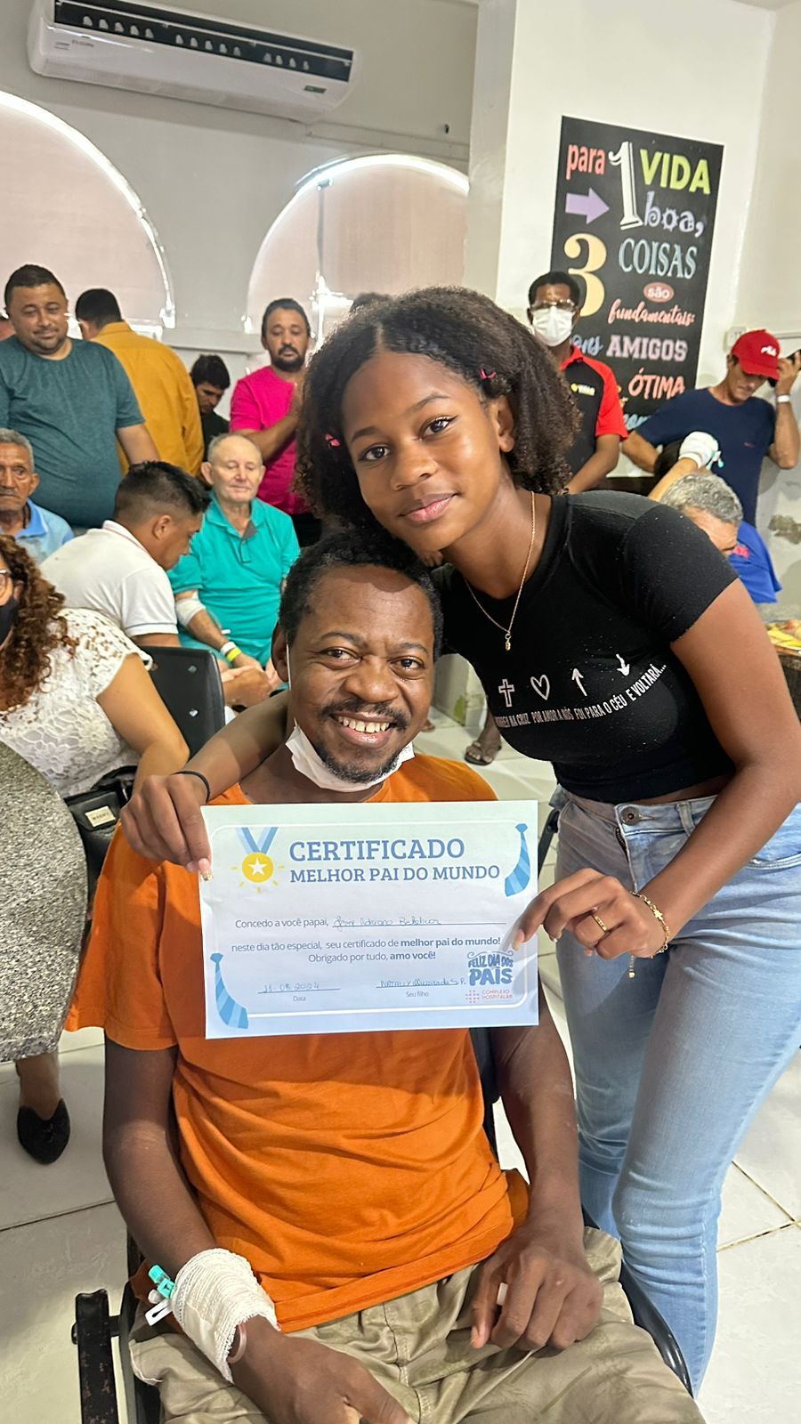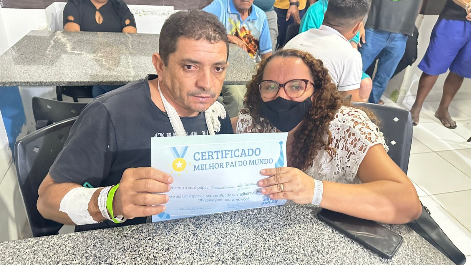 O mecânico industrial Jerry Adriano, de 48 anos, de Patos, que está no hospital há 22 dias acompanhado da esposa, a Sra. Erinalva, também gostou da comemoração do Dia dos Pais. “Foi muito bom. Ouvir a palavra de Deus foi uma benção, um alívio, principalmente, para mim que estou há tantos dias internado esperando fechar meu diagnóstico. Por instantes, esqueci até as dores”, disse ele, que recebeu o certificado de ‘Melhor pai do mundo” de sua filha Nataly. Ele também é pai de Natanael e Nicolly.