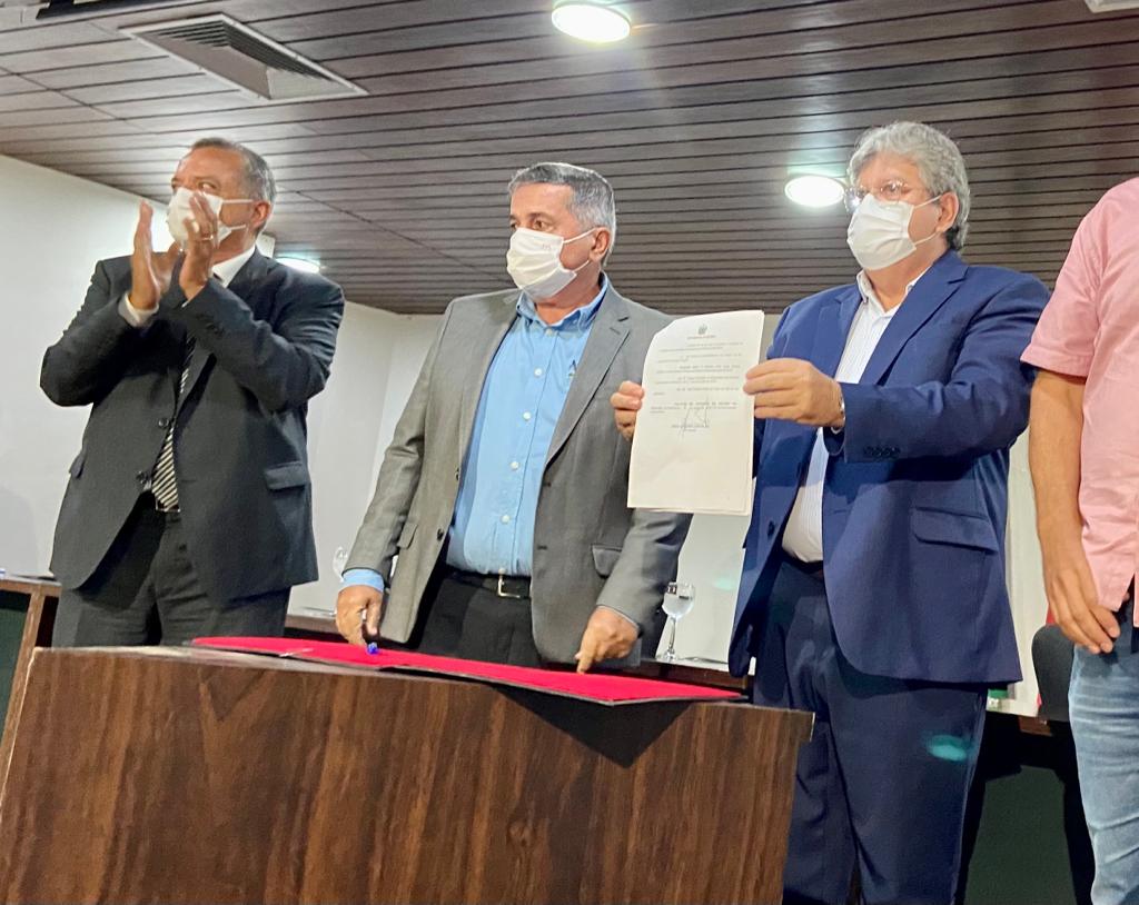 Governador mostra documento ao lado do presidente da Asplan, José Inácio e do secretário da Fazenda, Marialvo Filho Posted on: 08/03/2022News Comunicação