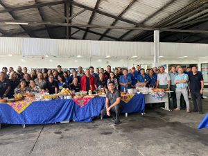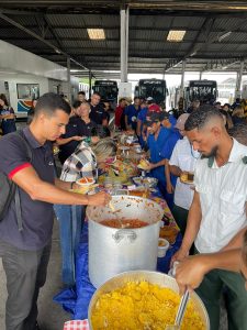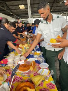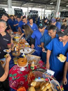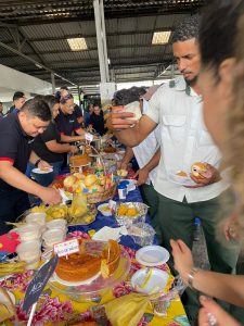 Antes da degustação, todos os presentes realizaram uma oração de agradecimento. Depois se serviram à vontade numa grande mesa decorada com motivos juninos. O café junino compartilhado, realizado pela primeira vez neste formato compartilhado, teve a participação de todos os setores das empresas e recebeu elogios de todos os que participaram, só faltou o som do triângulo, da zabumba e da sanfona para animar ainda mais o ambiente, mas, os participantes da celebração já disseram que em 2026 a contratação do trio estará garantida.