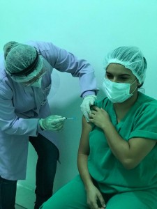 Profissionaol da linha de frente do Complexo recebendo a vacina nedsta quarta-feira Posted on: 21/01/2021administrador
